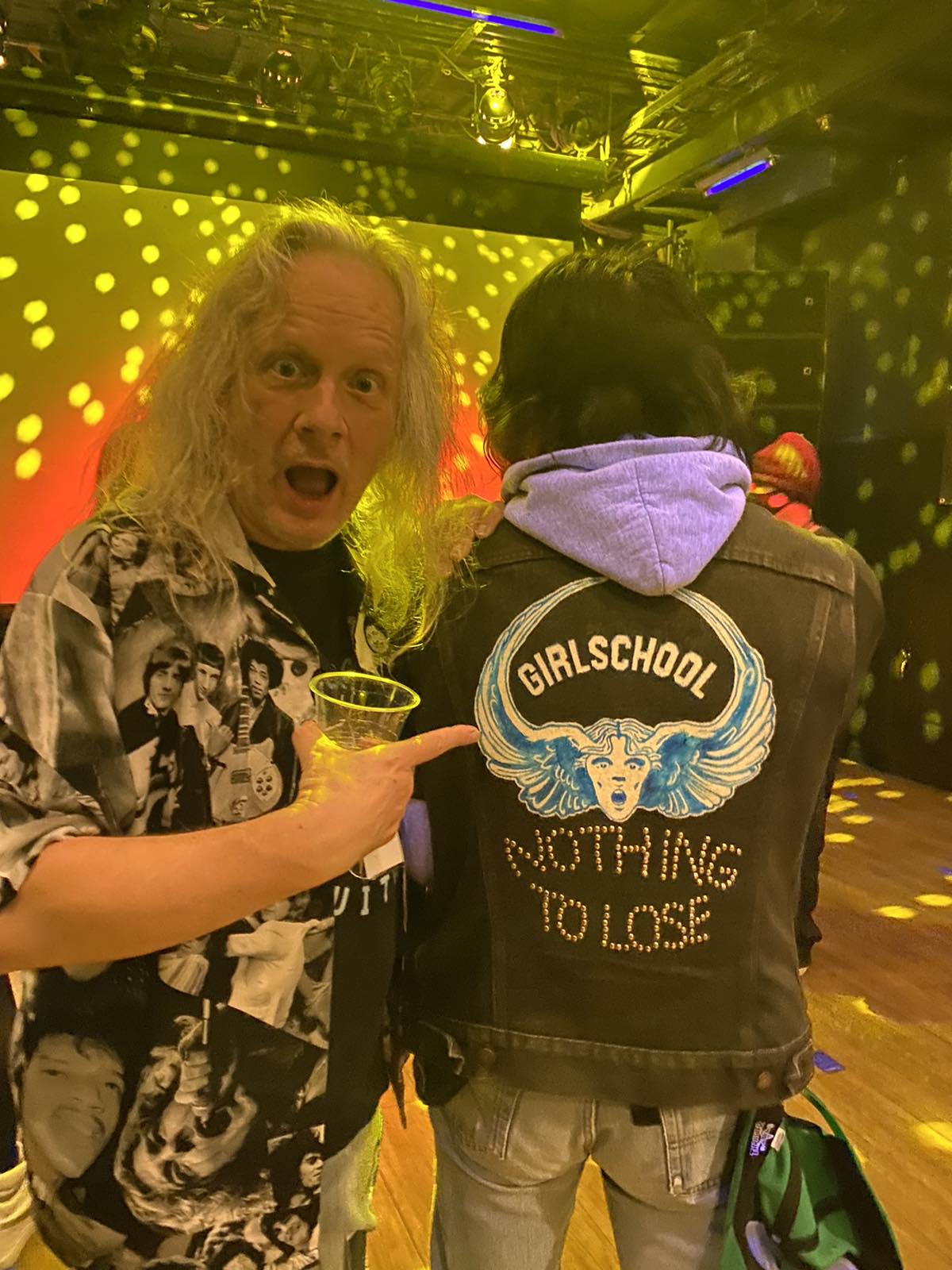 GW: That’s right. The big Girlschool logo here is from the first single and my Mum embroidered it for me. On the back, I painted the Yes Tormato album cover for the two shows they did at Wembley on October 28th, 1978. They did two shows in one day – I saw both – and the ‘Ten True Summers’ across the top is because it was their tenth anniversary.